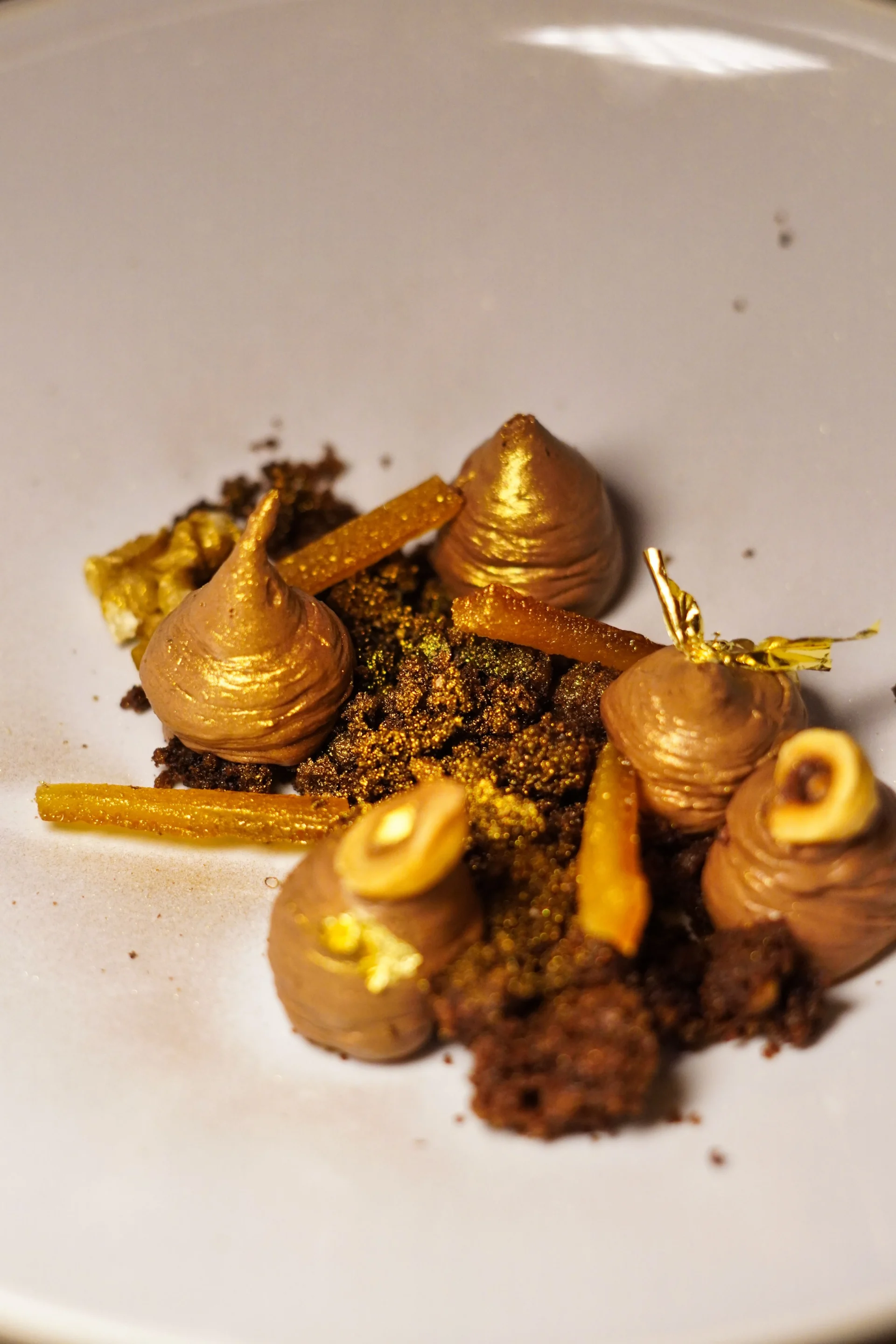 Con “La prateria e il bosco”, lo chef Davide Barone ha portato in scena il bisonte umbro brasato, le lenticchie di Castelluccio IGP, il tartufo nero pregiato in salsa San Pietro a Pettine e le nocciole. Un piatto di carattere deciso, che ha trovato il suo interlocutore ideale nel “Poggio Pietroso” Trasimeno Gamay Riserva DOC 2020 di Cantina Duca della Corgna e nel grande rosso della serata: il “Fidenzio” Montefalco Sagrantino DOCG 2018 di Cantina Tudernum tannini importanti, anima austera, la quintessenza di un vitigno autoctono che non assomiglia a nessun altro al mondo.